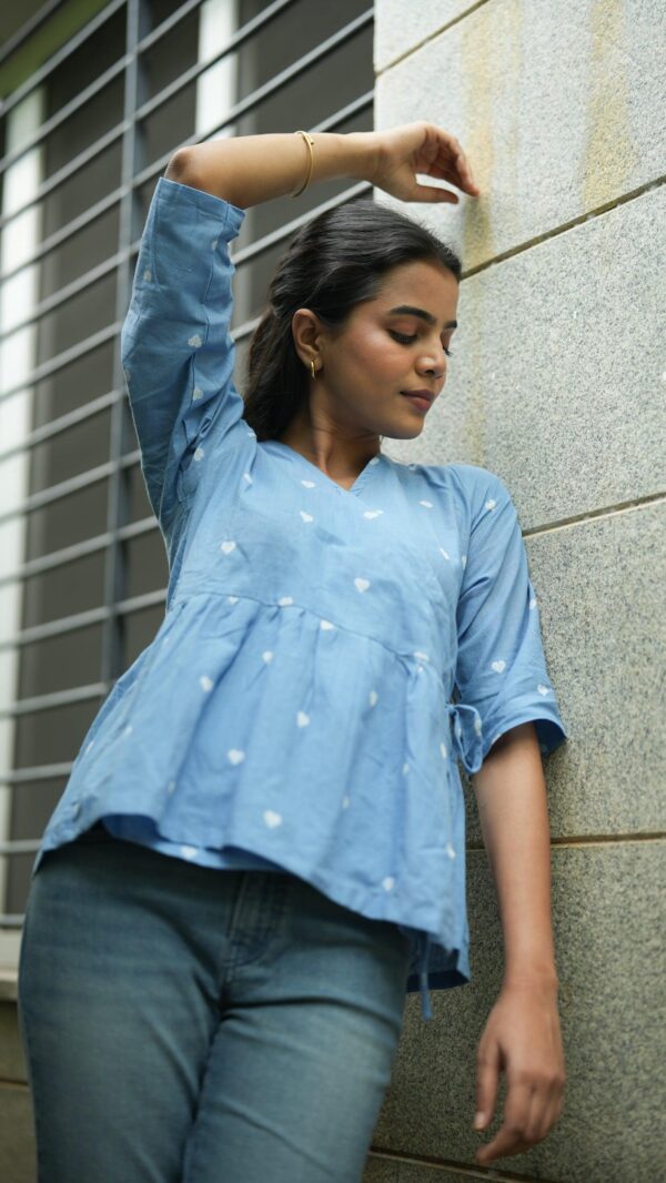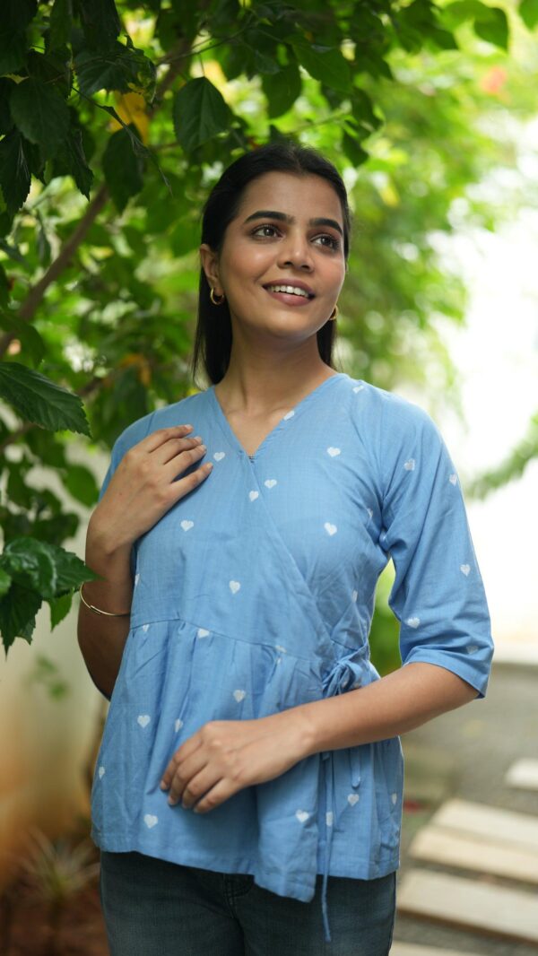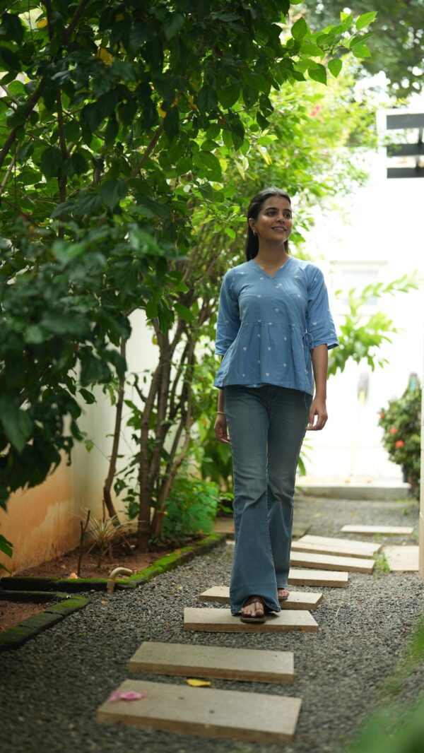 A pretty blue handloom wrap on top!
